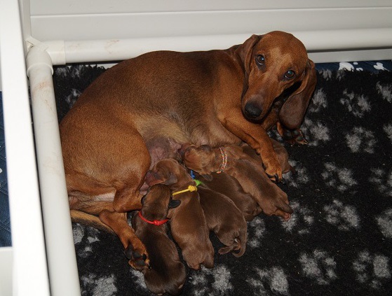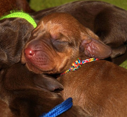 in einer unkomplizierten Geburt hat Dolly gestern am 8. Oktober 6 kräftigen Welpen das Leben geschenkt. Wir begrüssen im Sternzeichen Waagedie Rüden: Apache und Arthur - Farbe: braundie Hündinnen: Adele, Alma, Agathe und Aurelia - Farbe rot